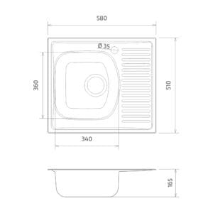 CHIUVETA INOX 2601.B1/2SM 580×510 1C1/2P ST. SANOBI (1/1)